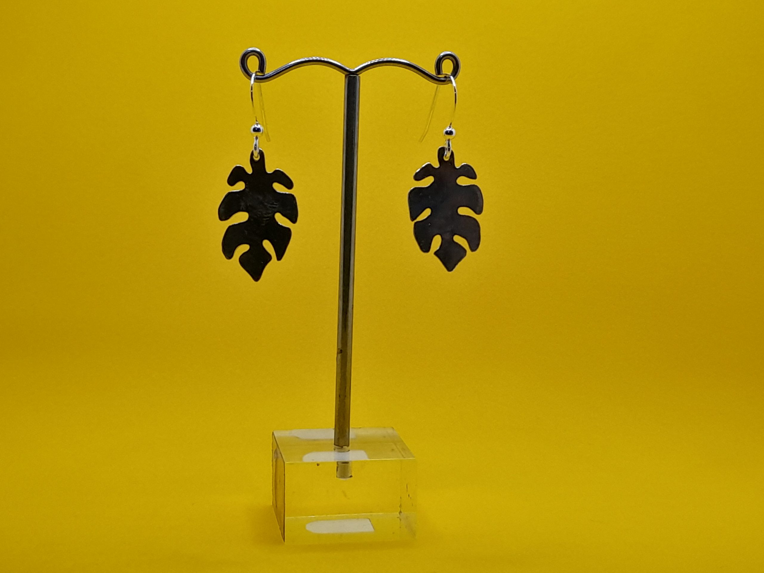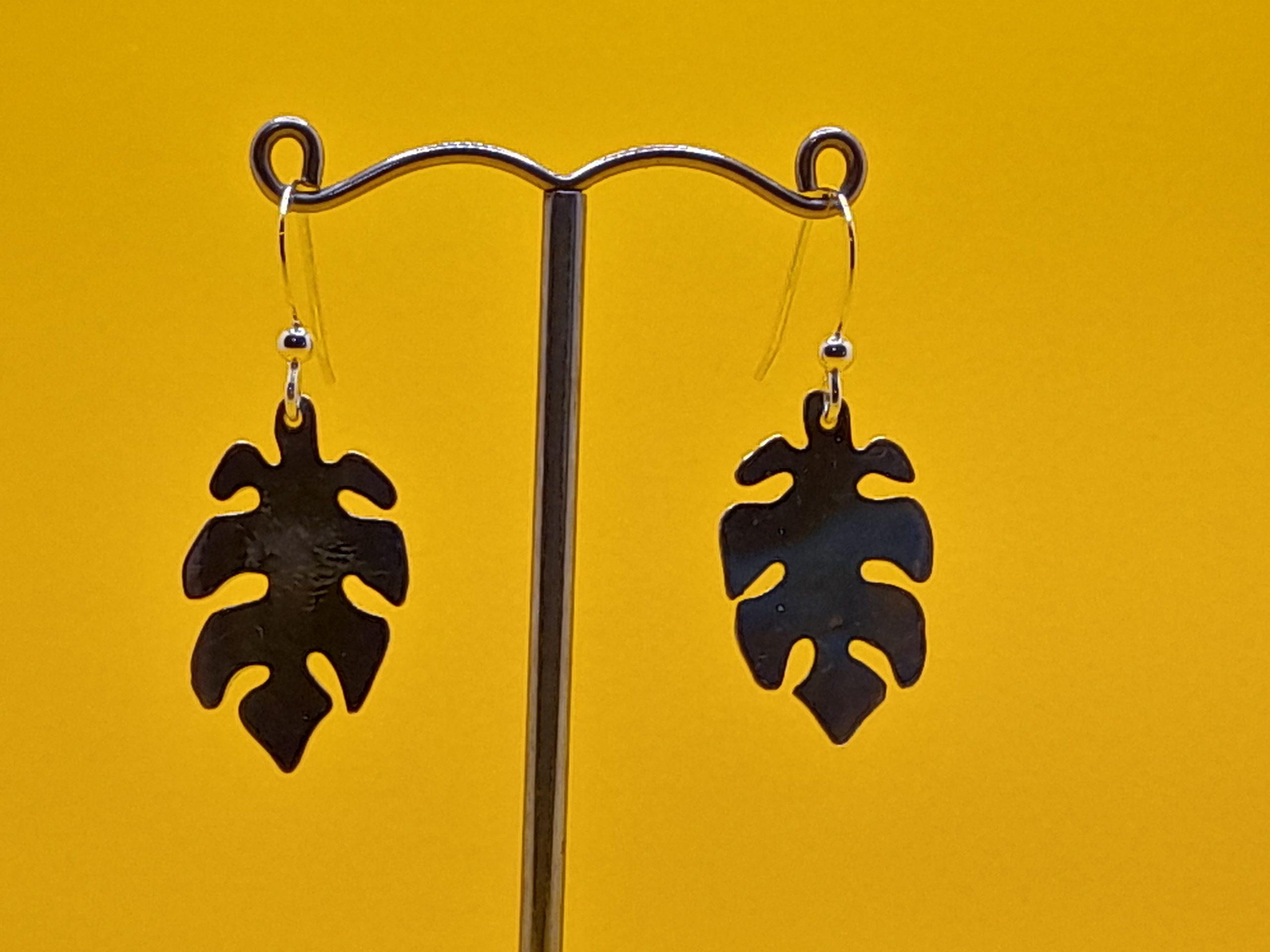 These distinctive sterling silver earrings are expertly crafted from two flattened coffee spoon bowls. Each spoon bowl is meticulously shaped and cut to resemble the iconic Monstera leaf, resulting in a pair of elegant and eye-catching earrings. The unique transformation of the spoon bowls into Monstera leaves highlights both the creativity and craftsmanship involved in their making, ensuring every pair is individual and full of character.